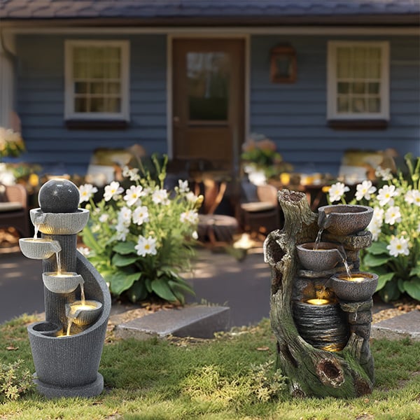 Character water features add personality and charm—think ornate tiered designs or sculptural pieces.