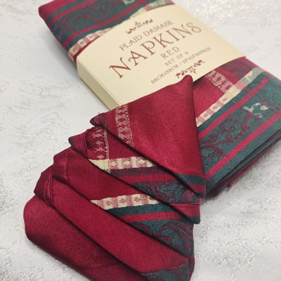 A great way to start the search for your festive table linen. Mixing plain tablecloths with pattern napkins or the opposite also works. We would not recommend mixing patterns unless you really know what you are doing.